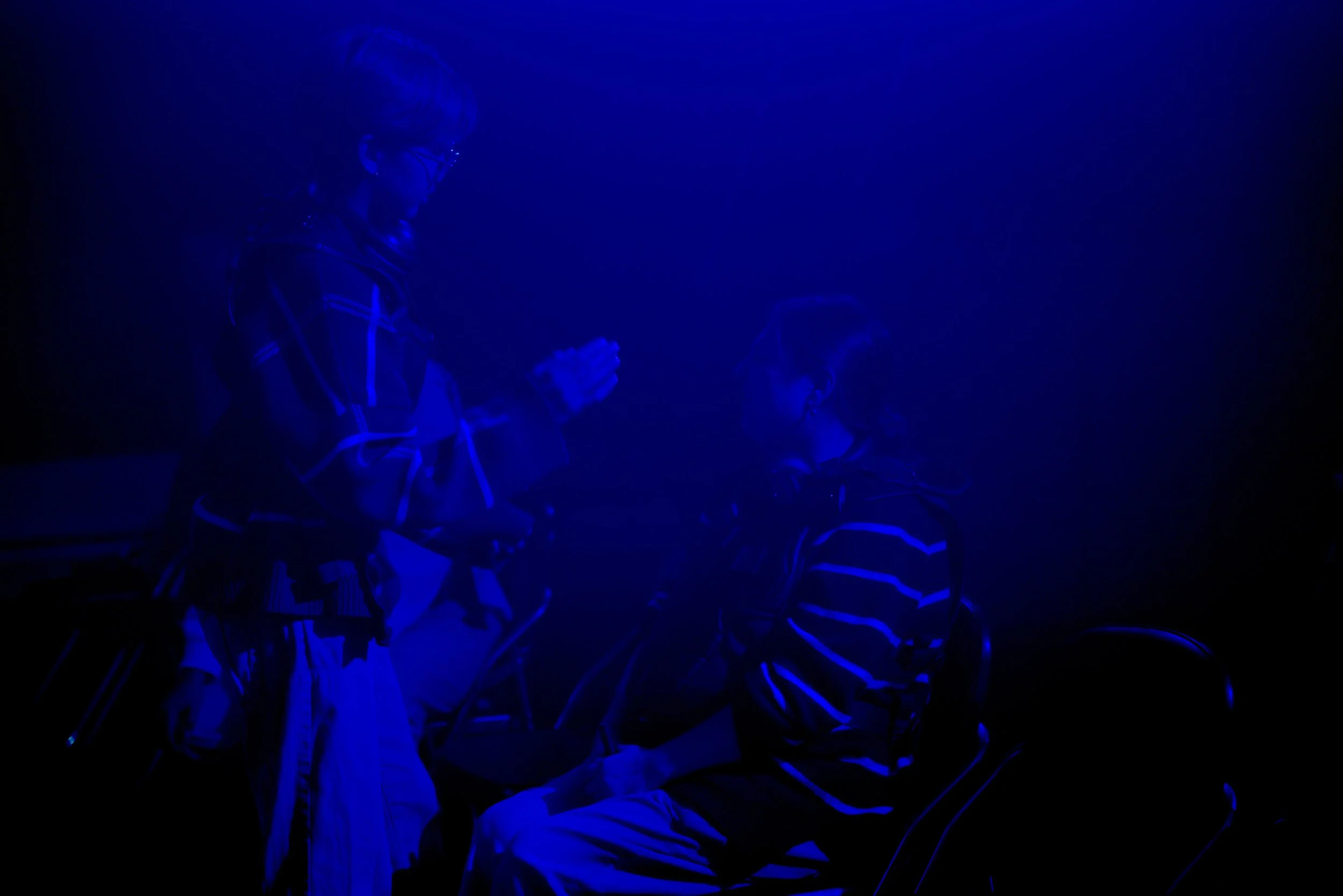 Complete darkness, a vast sea, 8kms, the distance many undertake in search of asylum in Europe. SWIM is an immersive audio-haptic experience that imagines the physical, mental and spiritual challenges of this treacherous passage as it meditates upon the emotional toll of displacement. Harnessing cutting-edge technologies to simulate audio and tactile sensations, the audience experiences much of the piece in darkness plunged into immersive audio, haptic technology and tactile sensorium.